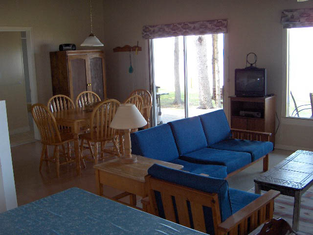 Our recently renovated waterfront cottage has a large, open concept livingroom, dining area and kitchen, A sliding door opens onto a deck with patio furniture and propane BBQ. Down the hall is a screened-in sunroom also with dining and sitting areas. These areas all have a panoramic view of Tracadie Bay and the Blooming Point dune system.